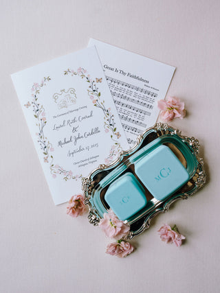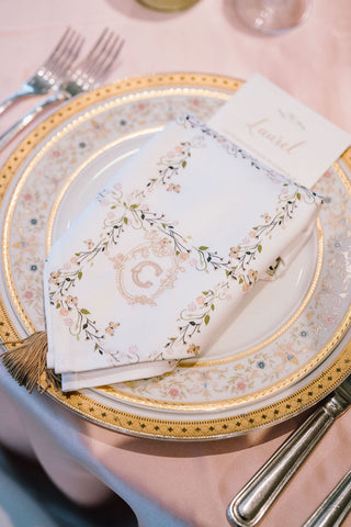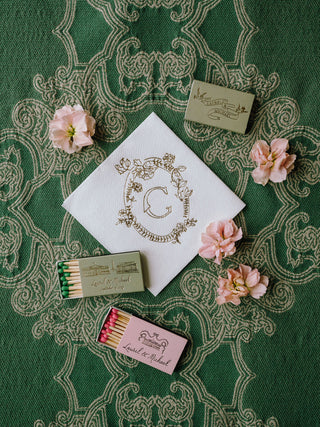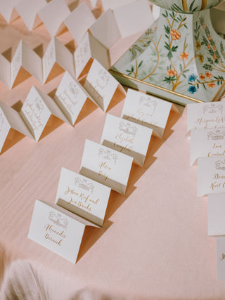 The invitation suite set the tone for the celebration with custom illustrations that softly echoed the romance of a blooming garden. A classic gold-foiled invitation featured a bespoke crest, adding a timeless, heirloom-quality touch. Every detail leaned into the garden theme, blending elegance and whimsy for a beautifully cohesive first impression.