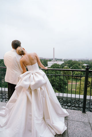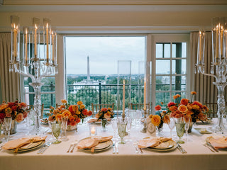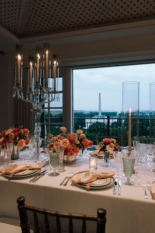 The rooftop at The Hay-Adams is iconic — sweeping views, classic architecture, and that unmistakable Washington elegance. For this wedding, the space was transformed into a lush garden in bloom. Climbing florals softened the ironwork, delicate candlelight flickered across linen-draped tables, and layers of ivory, blush, and antique gold created a palette that felt both regal and ethereal.
