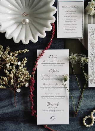 This celebration was proof that small can still feel grand — especially when elevated with custom wedding stationery, fine calligraphy, and meaningful artistic touches.